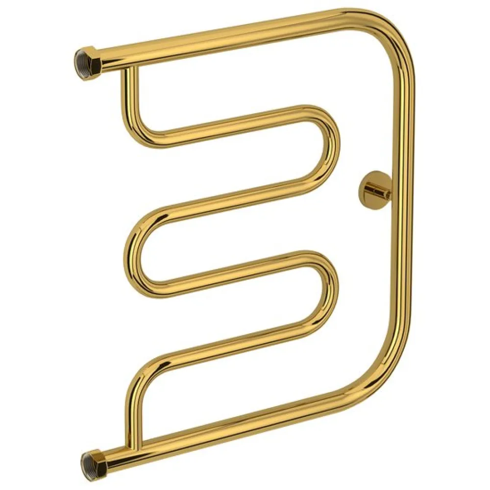 Тип: водяной , Форма: лира , Материал: нержавеющая сталь , Подключение: боковое , Посадочное (межосевое) расстояние: 500 мм, Посадочный диаметр: 1 ", Высота: 53.6 см, Ширина: 50 см, Цвет: золотистый