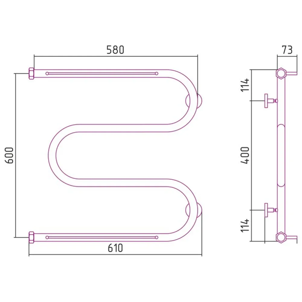 Полотенцесушитель Сунержа М-образный 2 полки 600х600 00-0008-6060