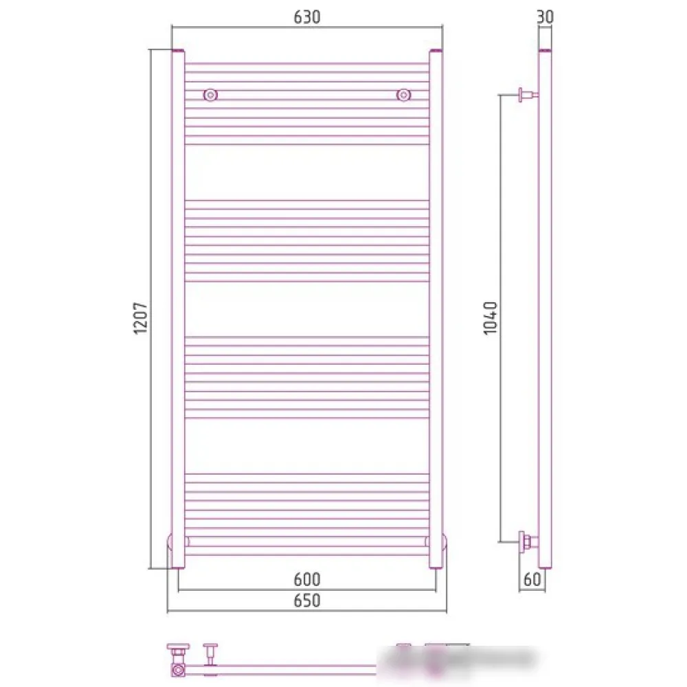 | Информация | Дизайн-радиаторы для систем ГВС и отопления Модус Сунержа не имеют аналогов среди отечественных производителей по качеству сборки и наружней обработки металла, делаются полностью из нержавеющей стали. Гарантия 10 лет. Доставка по России - бесплатно. Межосевое расстояние: -- нижнее подключение X (мм) 600 Внешние габариты (высота х ширина х глубина) (мм) 1207 х 650 х 75 Подключение Универсальное Материал Нержавеющая сталь AISI 304 L (04X18H10) Площадь помещения (м-) 11.1 Объем помещения (м-) 27.7 Теплоотдача (Qвт) 1107 Рабочее давление от 3 до 15 атм Давление испытаний 60 атм Температура теплоносителя до 105°С Дизайн-радиатор с применением технологии «ПолимерПротект». межосевое расстояние при вертикальном подключении 1200 мм; межосевое расстояние при диагональном подключении 1200 мм в параметрах указано межосевое расстояние при нижнем подключении |