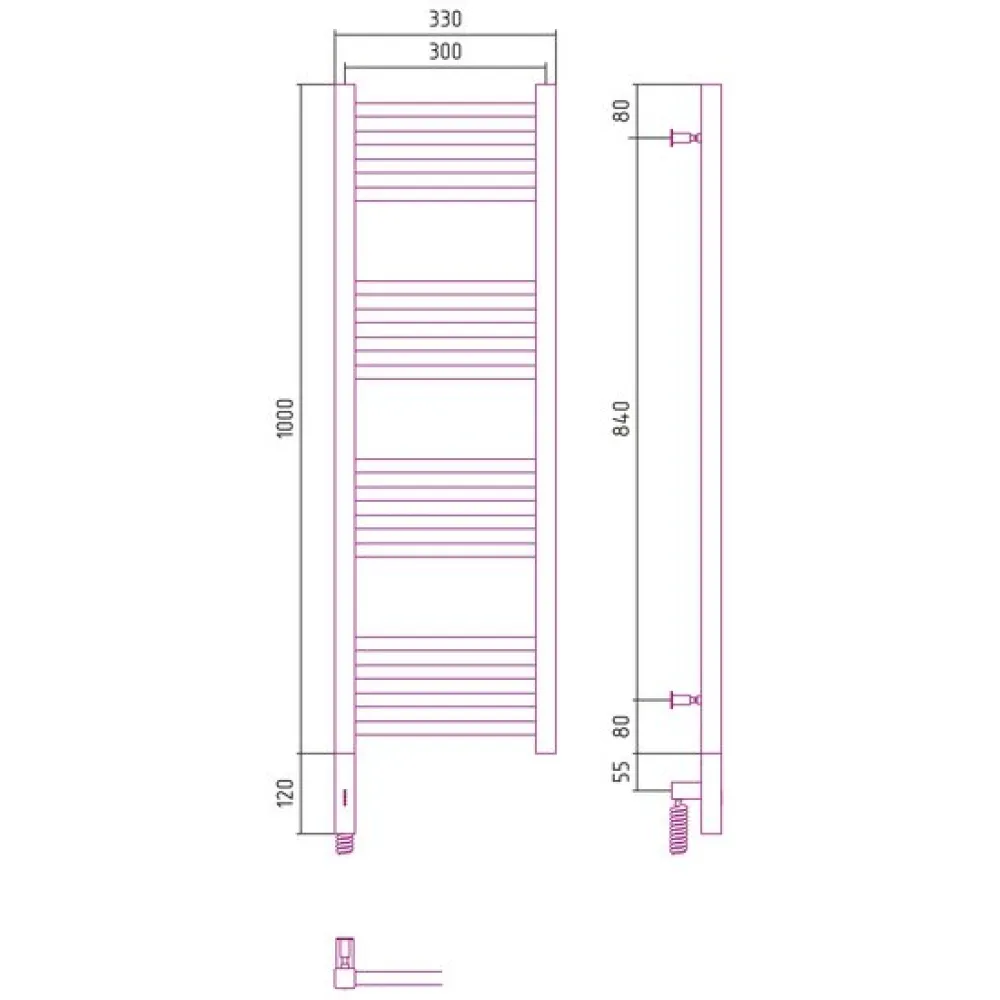Полотенцесушитель Сунержа Модус 3.0 1000x300 МЭМ левый 00-5700-1030