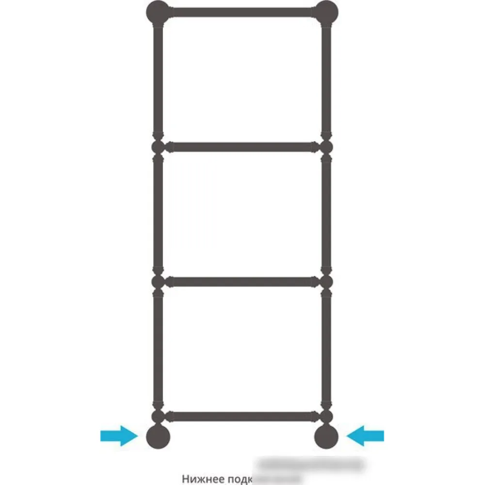 водяной, "лесенка", нержавеющая сталь, подключение нижнее, 133.3x57.2 см, цвет: полированная сталь