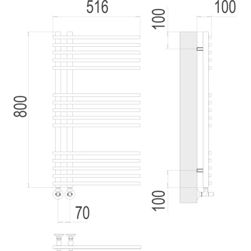 Тип: водяной , Форма: расчёска , Материал: нержавеющая сталь , Подключение: нижнее , Посадочное (межосевое) расстояние: 70 мм, Посадочный диаметр: 1/2 ", Высота: 100 см, Ширина: 50 см, Цвет: черный , Количество ребер: 20 шт.