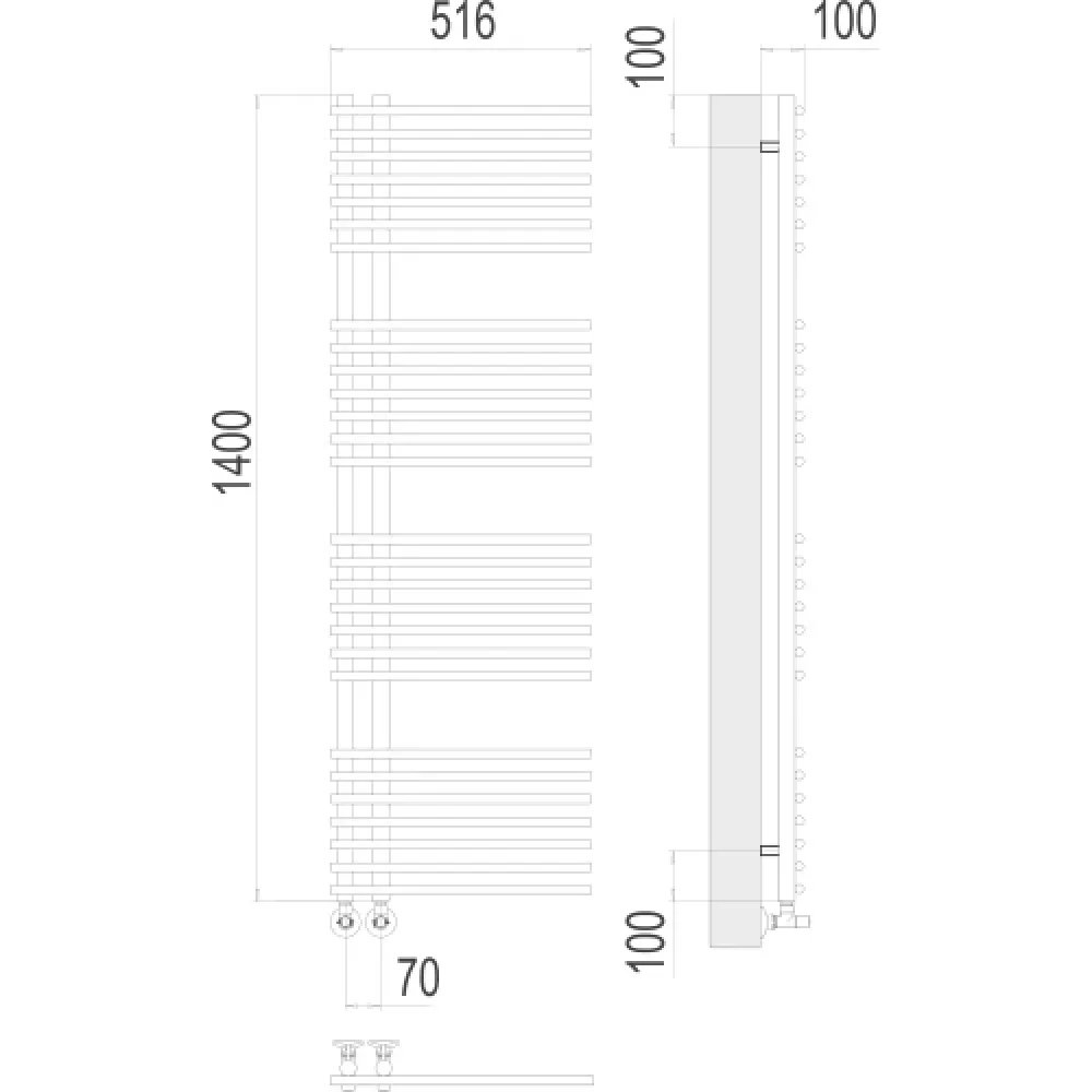 Тип: водяной , Форма: расчёска , Материал: нержавеющая сталь , Подключение: нижнее , Посадочное (межосевое) расстояние: 70 мм, Посадочный диаметр: 1/2 ", Высота: 140 см, Ширина: 50 см, Цвет: хром , Количество ребер: 28 шт.