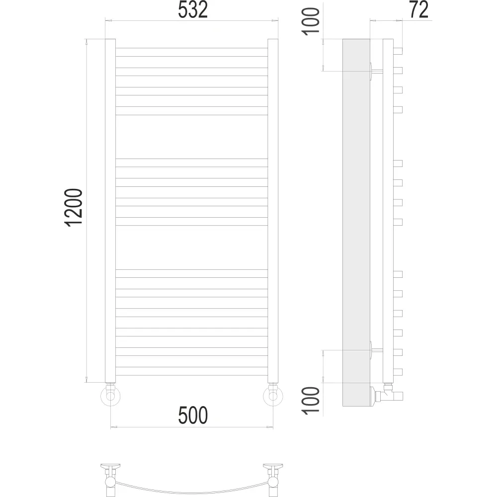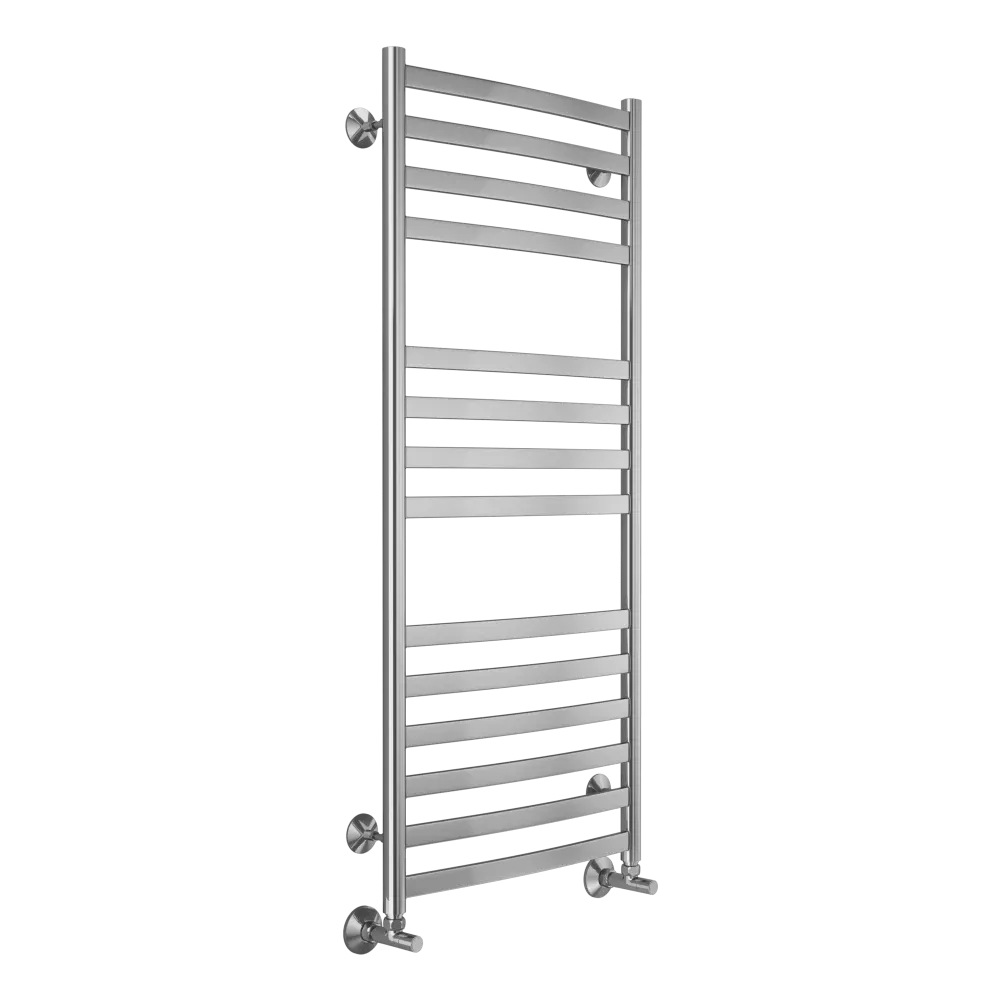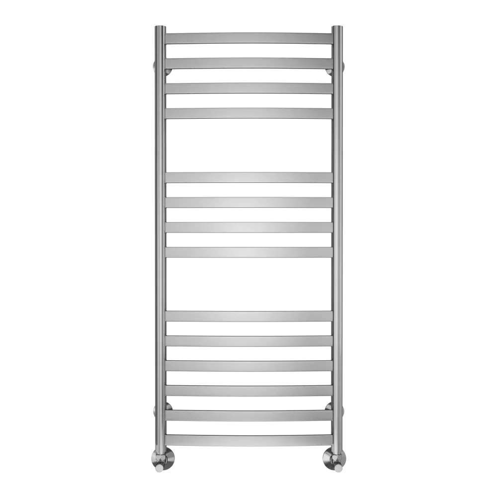 Тип: водяной , Форма: лесенка , Материал: нержавеющая сталь , Подключение: нижнее , Посадочное (межосевое) расстояние: 500 мм, Посадочный диаметр: 1/2 ", Высота: 120 см, Ширина: 50 см, Цвет: полированная сталь , Количество ребер: 14 шт.