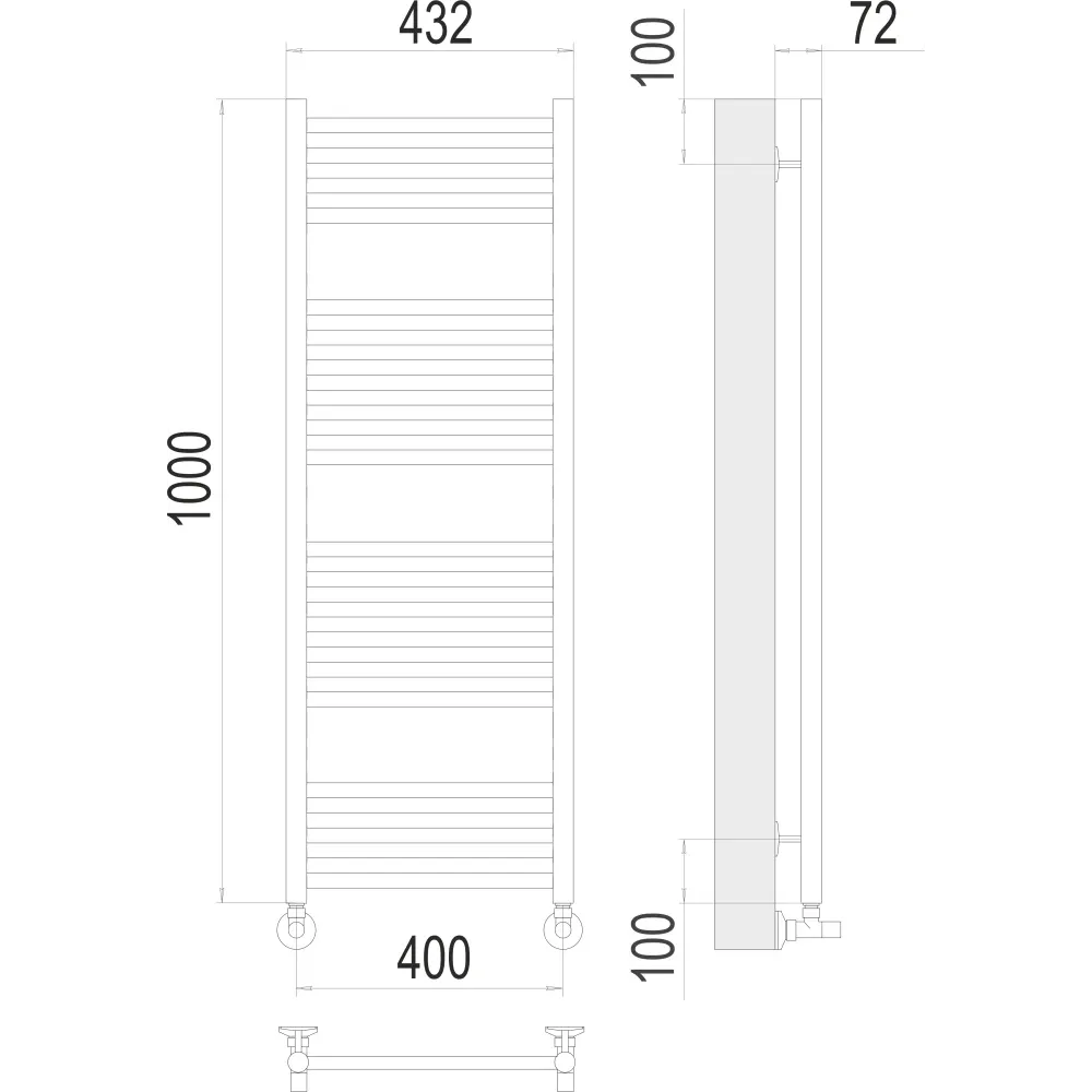 Тип: водяной , Форма: лесенка , Материал: нержавеющая сталь , Подключение: нижнее , Посадочное (межосевое) расстояние: 500 мм, Посадочный диаметр: 1/2 ", Высота: 100 см, Ширина: 5 см, Цвет: хром , Количество ребер: 20 шт.