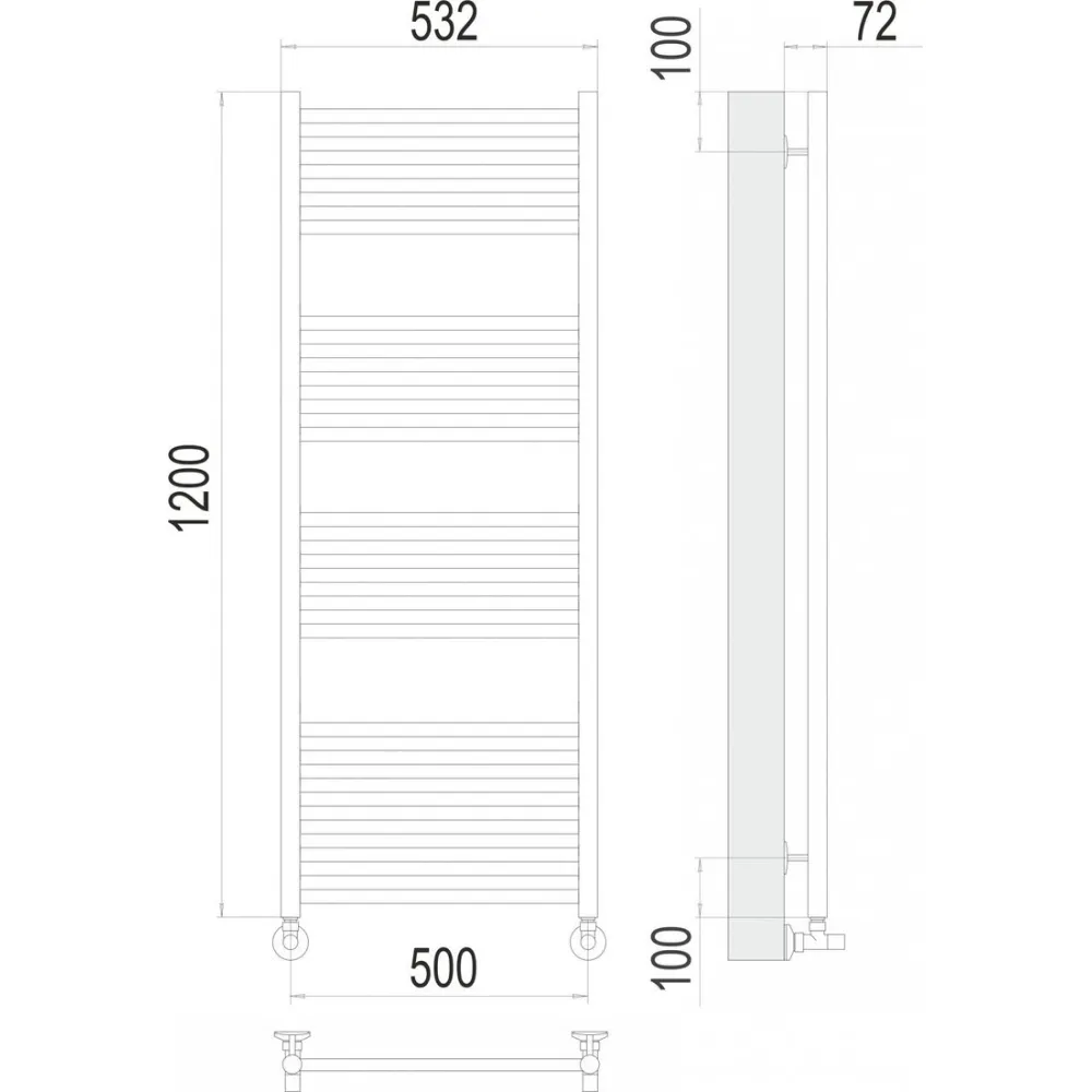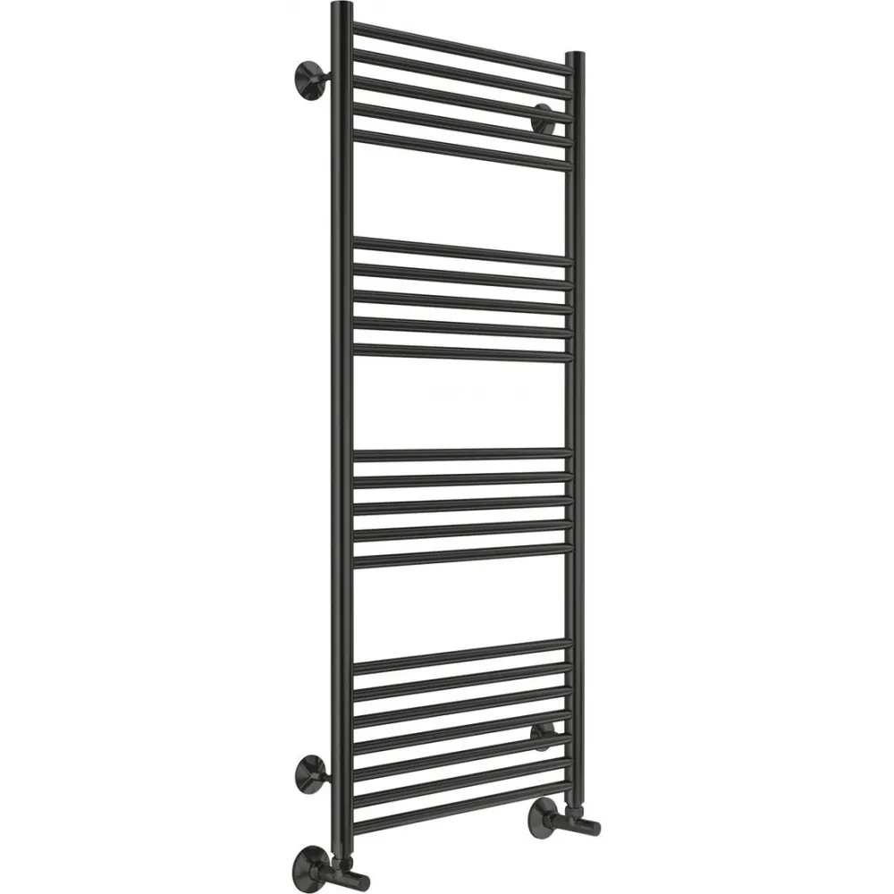 Тип: водяной , Форма: лесенка , Материал: нержавеющая сталь , Подключение: нижнее , Посадочное (межосевое) расстояние: 500 мм, Посадочный диаметр: 1/2 ", Высота: 120 см, Ширина: 50 см, Цвет: черный , Количество ребер: 22 шт.