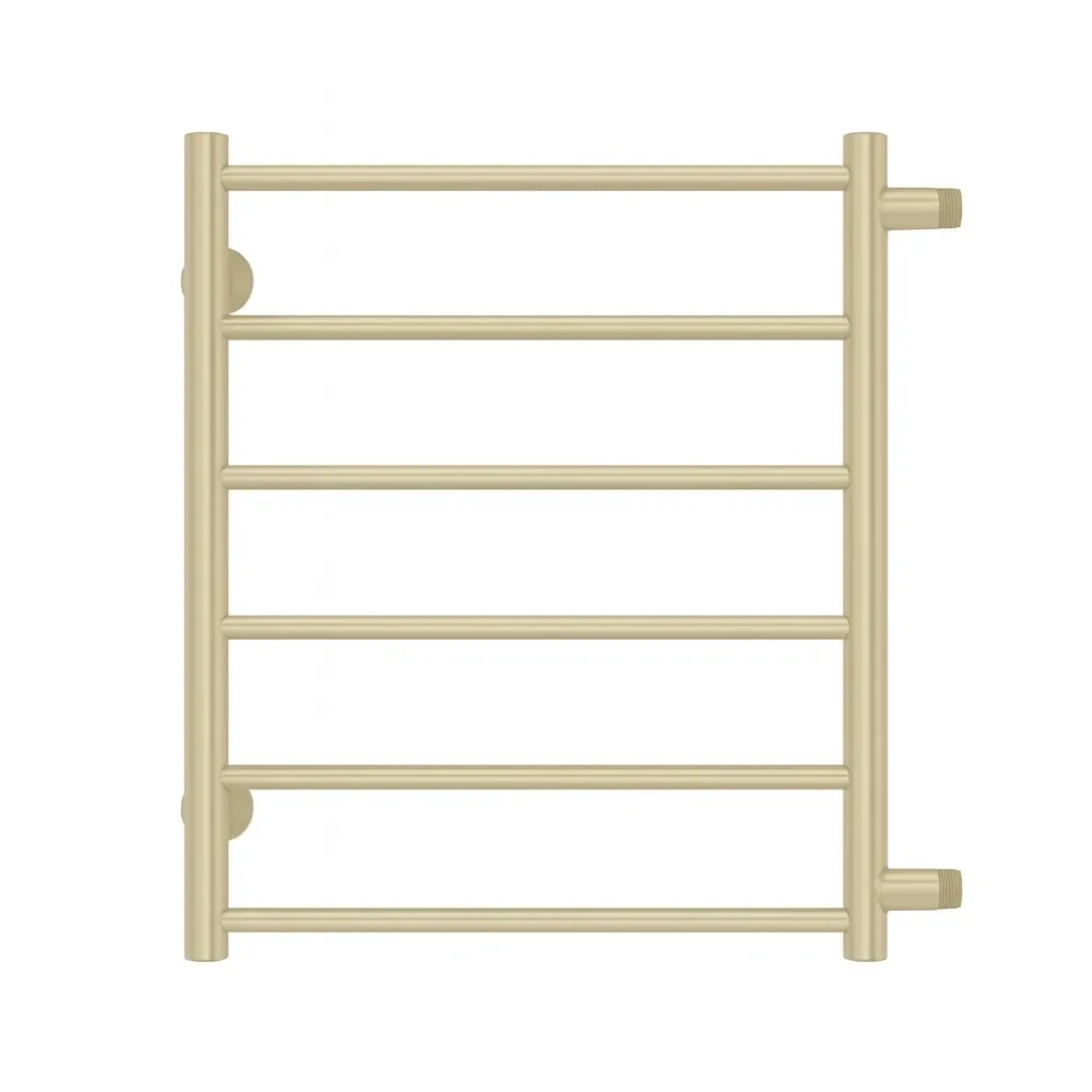 Тип: водяной , Форма: лесенка , Материал: нержавеющая сталь , Подключение: боковое , Посадочное (межосевое) расстояние: 500 мм, Посадочный диаметр: 1/2 ", Высота: 60 см, Ширина: 57.7 см, Цвет: золотистый , Количество ребер: 6 шт.