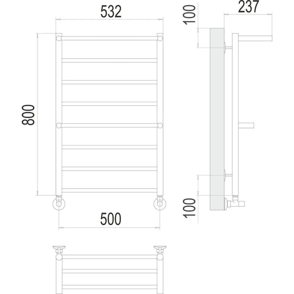 Полотенцесушитель водяной TERMINUS Аврора 500х800/8 1/2" (с 2 полками) нижнее подключение