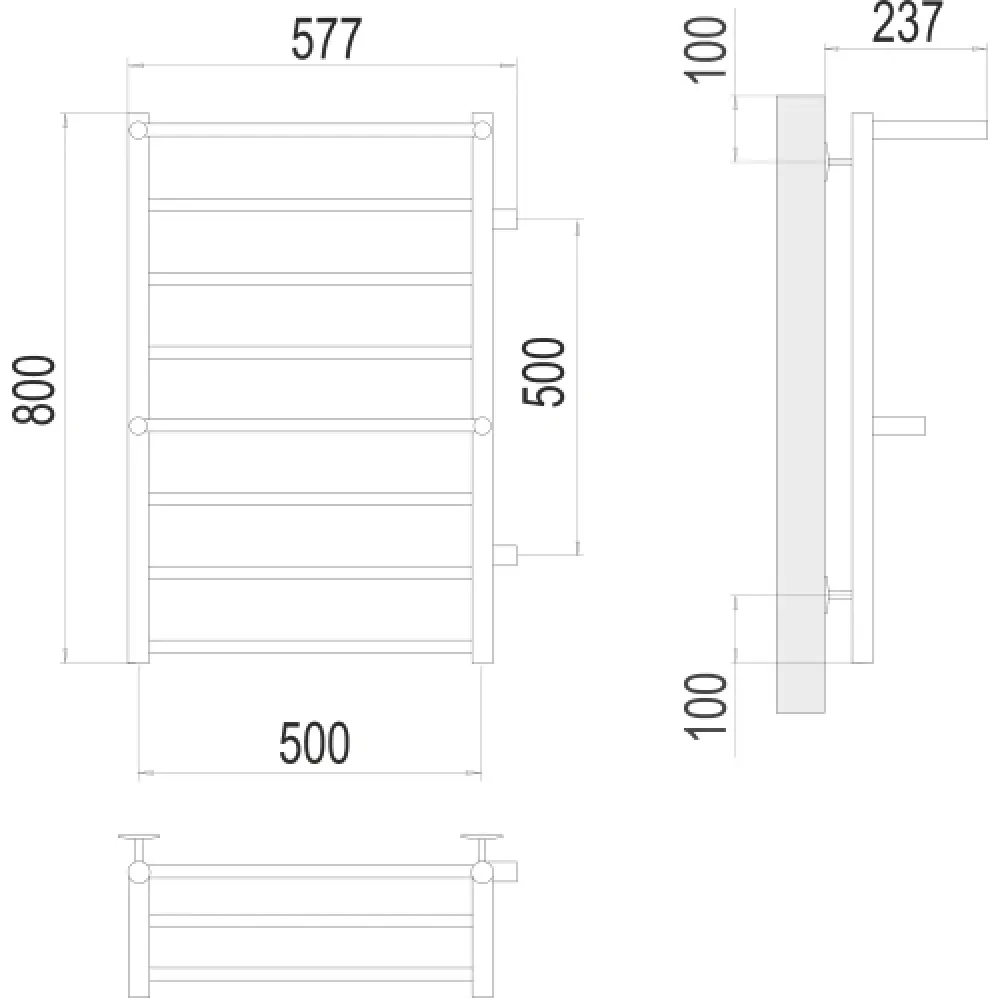 Тип: водяной , Форма: лесенка , Материал: нержавеющая сталь , Подключение: боковое , Посадочное (межосевое) расстояние: 500 мм, Посадочный диаметр: 1 ", Высота: 80 см, Ширина: 57.7 см, Цвет: хром , Количество ребер: 6 шт.
