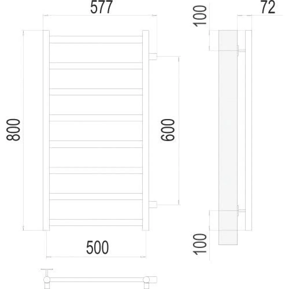 водяной, "лесенка", нержавеющая сталь, подключение нижнее (500 мм, 1/2"), 80x53.2 см, цвет: хром