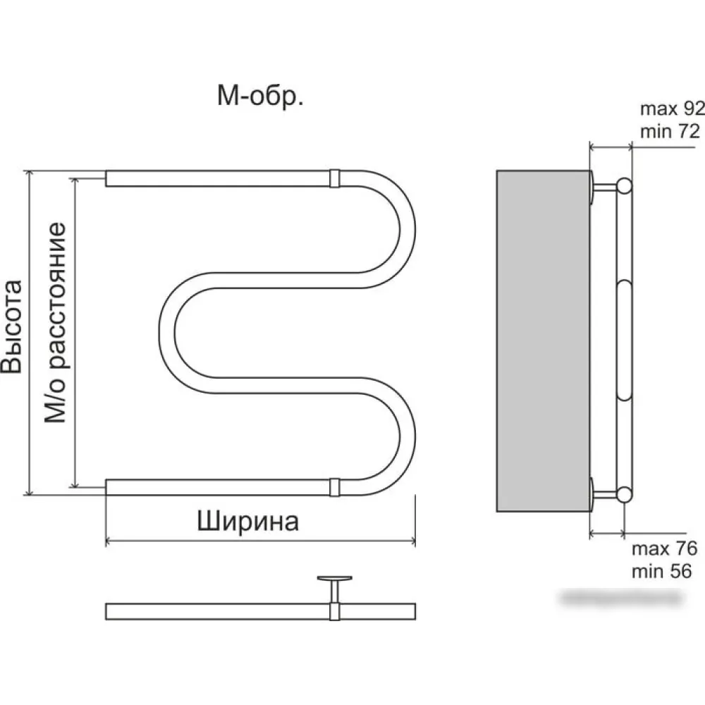 водяной, М-образный, нержавеющая сталь, подключение боковое, 63.2x40 см