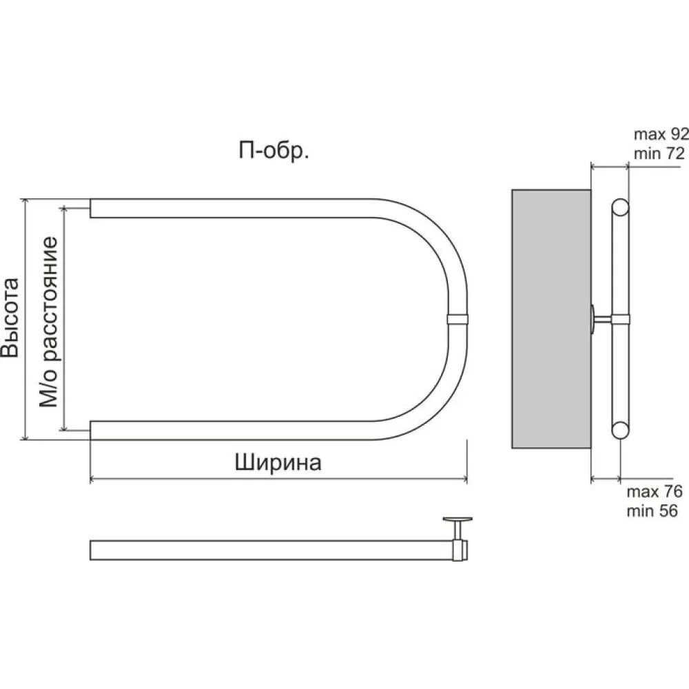 Тип: водяной , Форма: П-образный , Материал: нержавеющая сталь , Подключение: боковое , Посадочное (межосевое) расстояние: 500 мм, Посадочный диаметр: 1 ", Высота: 53.2 см, Ширина: 50 см