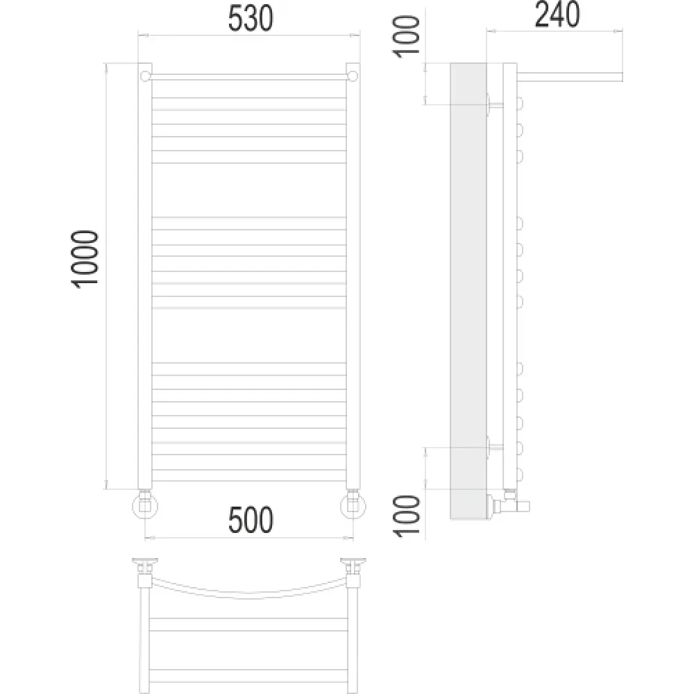 Тип: водяной , Форма: лесенка , Материал: нержавеющая сталь , Подключение: нижнее , Посадочное (межосевое) расстояние: 500 мм, Посадочный диаметр: 1/2 ", Высота: 100 см, Ширина: 50 см, Цвет: хром , Количество ребер: 13 шт.