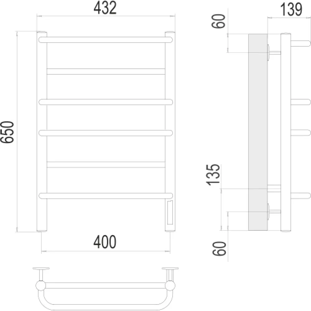 Тип: электрический , Форма: лесенка , Материал: нержавеющая сталь , Подключение: нижнее , Посадочное (межосевое) расстояние: 400 мм, Посадочный диаметр: 1/2 ", Высота: 65 см, Ширина: 40 см, Цвет: хром , Количество ребер: 6 шт.