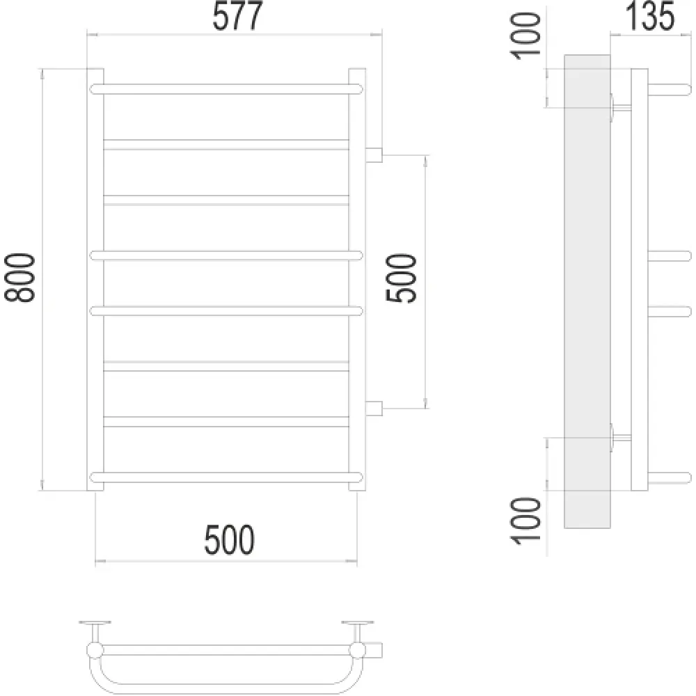 Тип: водяной , Форма: лесенка , Материал: нержавеющая сталь , Подключение: боковое , Посадочное (межосевое) расстояние: 500 мм, Посадочный диаметр: 1 ", Высота: 80 см, Ширина: 57.7 см, Цвет: хром , Количество ребер: 8 шт.