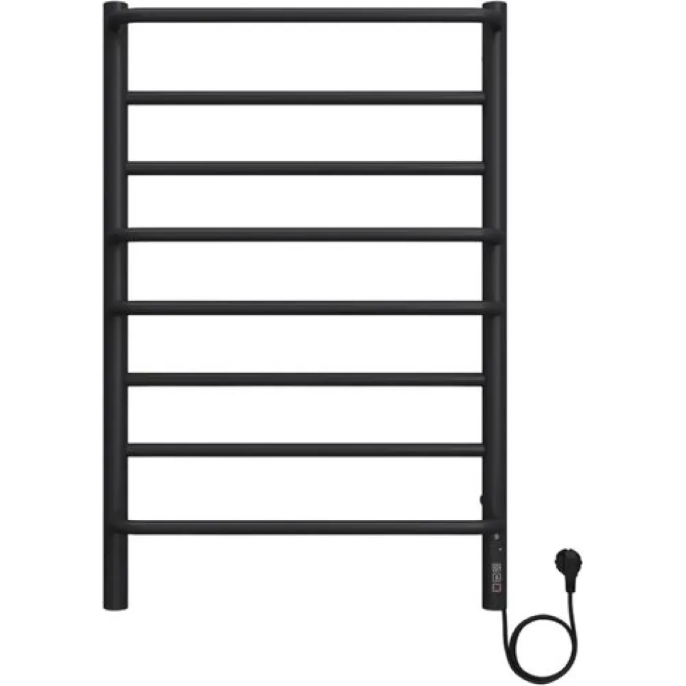 Тип: электрический , Форма: лесенка , Материал: нержавеющая сталь , Подключение: нижнее , Посадочное (межосевое) расстояние: 500 мм, Высота: 80 см, Ширина: 50 см, Цвет: черный , Количество ребер: 8 шт.