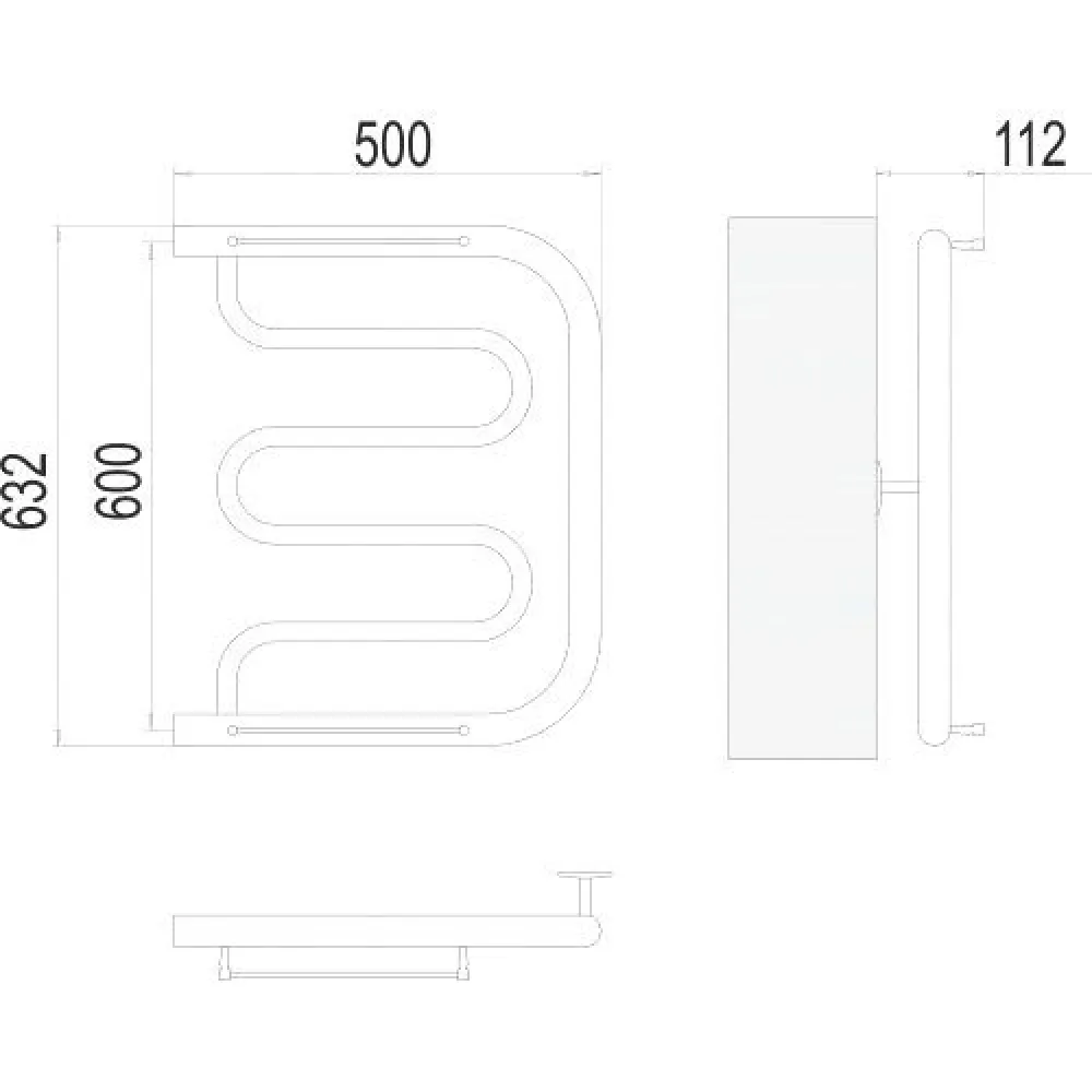 Тип: водяной , Форма: МП-образный , Материал: нержавеющая сталь , Подключение: боковое , Посадочное (межосевое) расстояние: 600 мм, Посадочный диаметр: 1 ", Высота: 63.2 см, Ширина: 50 см, Цвет: хром