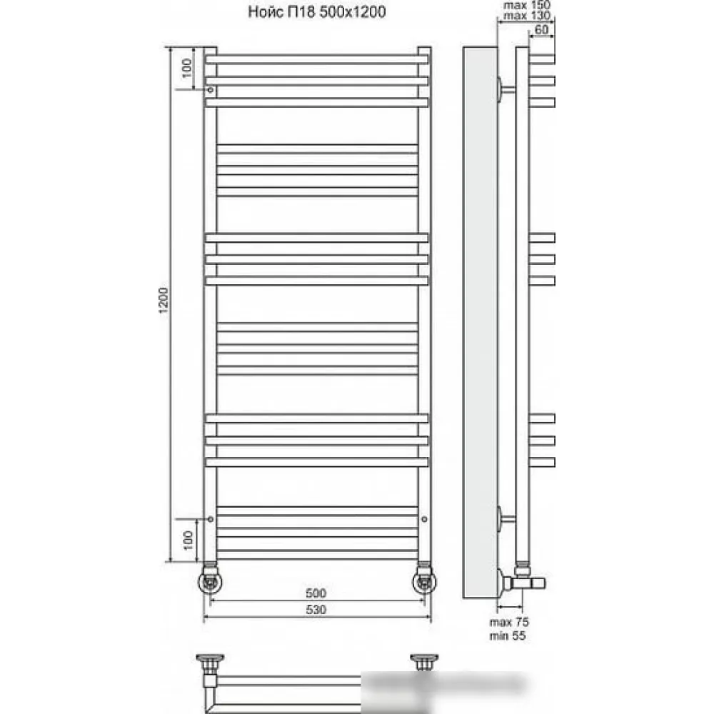 Тип: водяной , Форма: лесенка , Материал: нержавеющая сталь , Подключение: нижнее , Посадочное (межосевое) расстояние: 500 мм, Посадочный диаметр: 1/2 ", Высота: 80 см, Ширина: 50 см, Цвет: хром