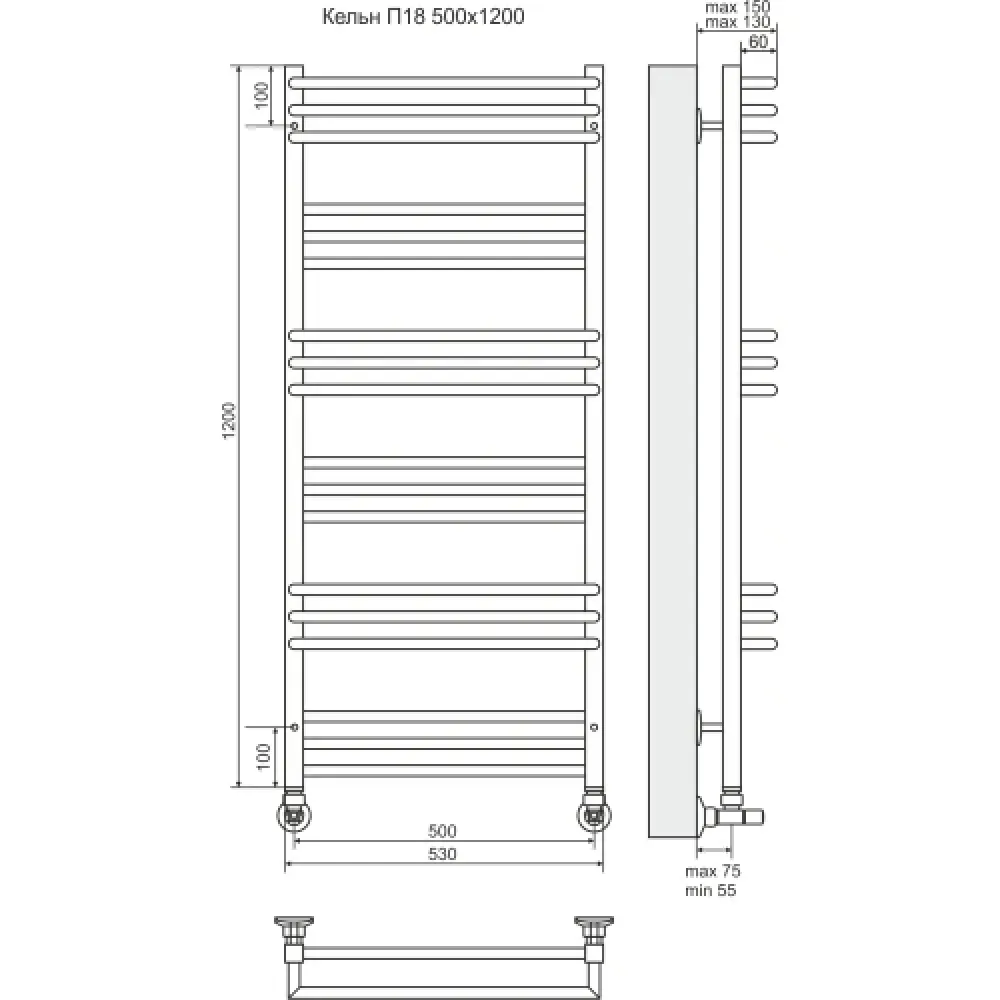 Полотенцесушитель водяной TERMINUS Кельн 500x1200/18 1/2" нижнее подключение