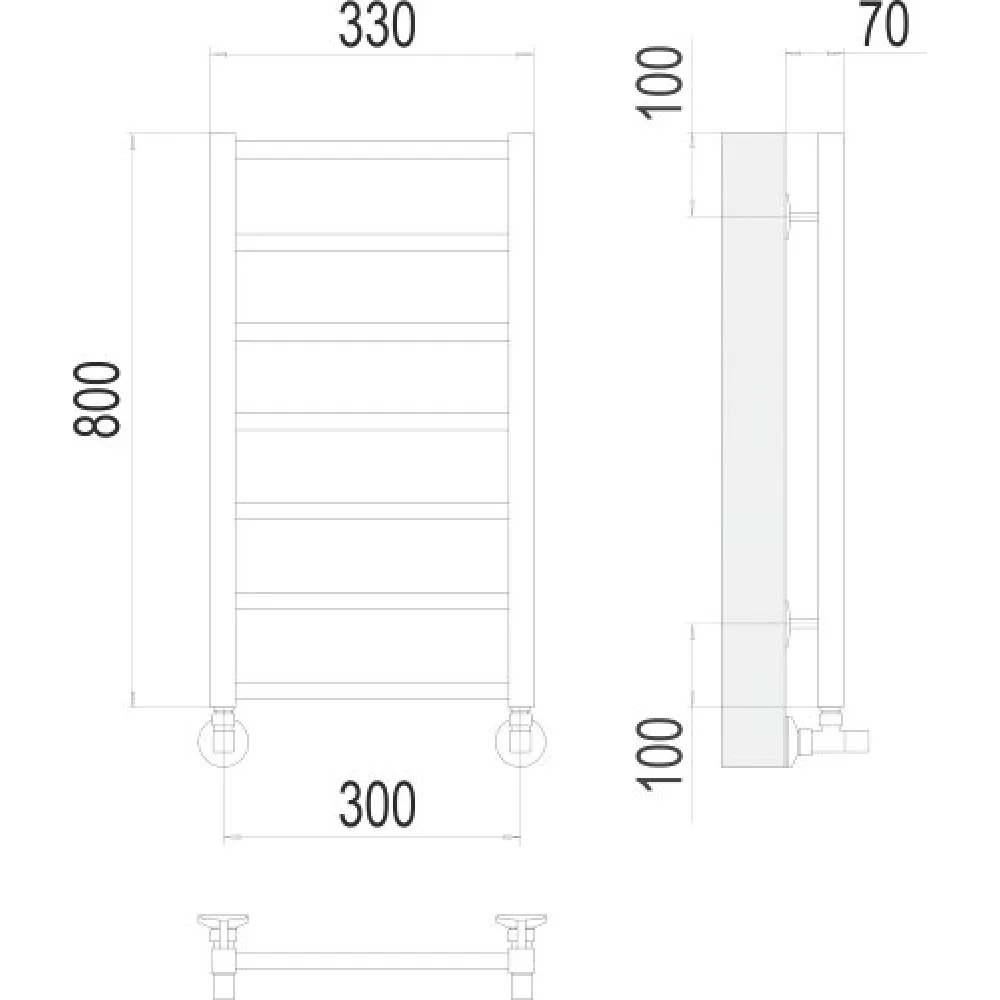 водяной, "лесенка", нержавеющая сталь, подключение нижнее, 60x40 см, цвет: хром