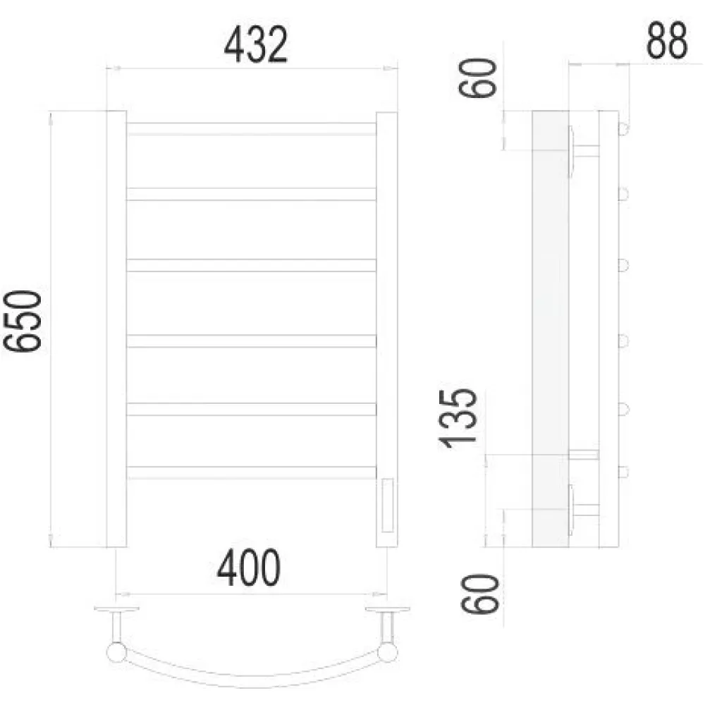 электрический, "лесенка", нержавеющая сталь, терморегулятор, 65x43.2 см, цвет: хром