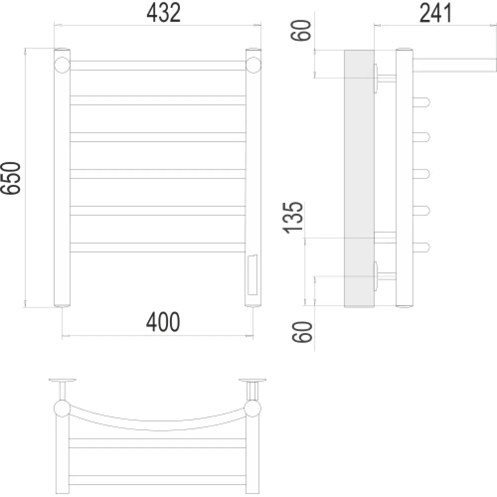 Тип: электрический , Форма: лесенка , Материал: нержавеющая сталь , Посадочное (межосевое) расстояние: 400 мм, Высота: 65 см, Ширина: 40 см, Цвет: хром , Количество ребер: 6 шт.