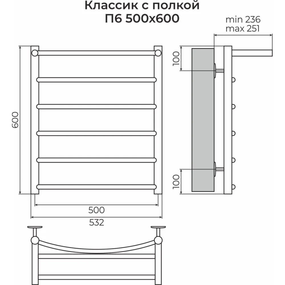 Полотенцесушитель TERMINUS Классик П6 500x600 (с полкой)