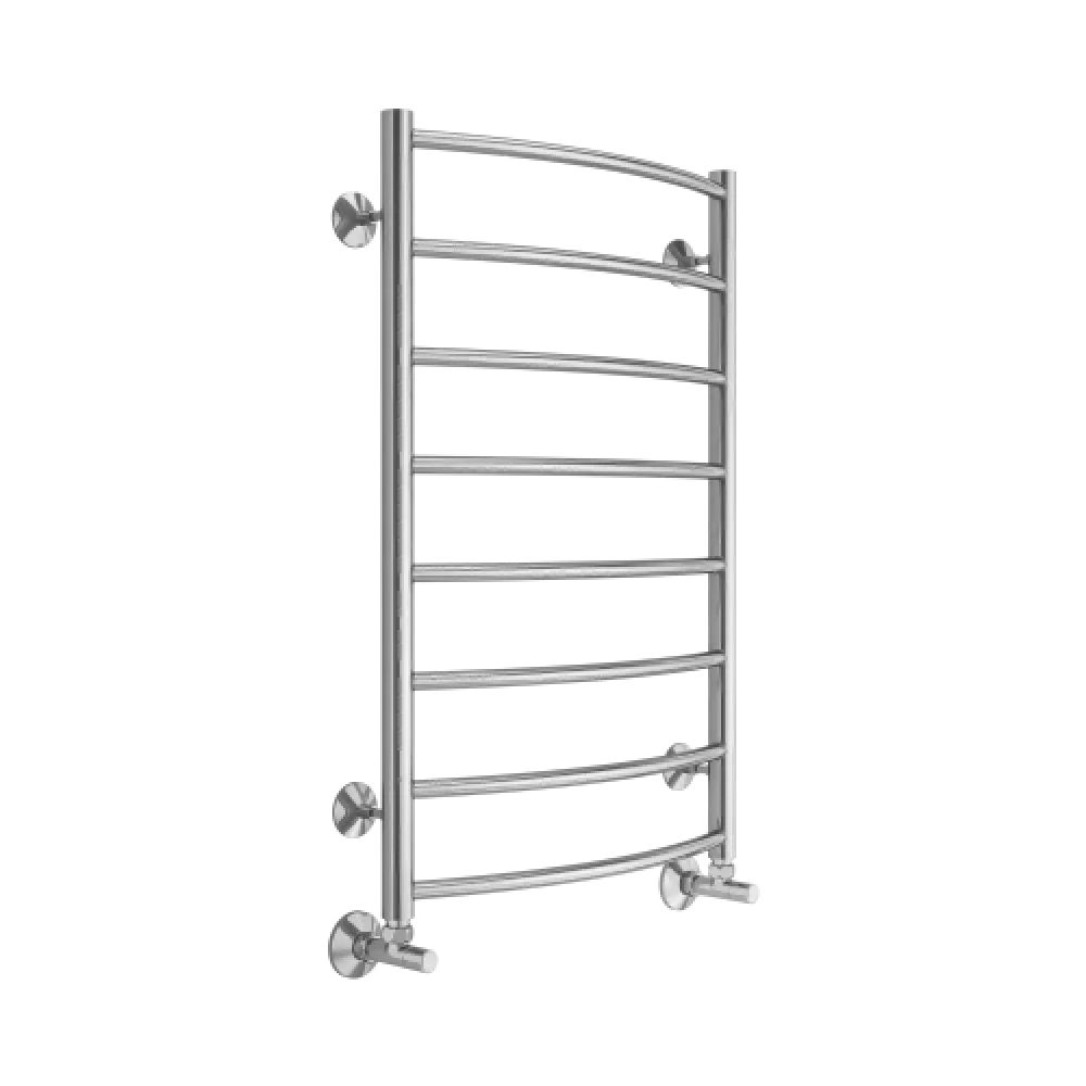 Тип: водяной , Форма: лесенка , Материал: нержавеющая сталь , Подключение: нижнее , Посадочное (межосевое) расстояние: 500 мм, Посадочный диаметр: 1/2 ", Высота: 80 см, Ширина: 50 см, Цвет: хром , Количество ребер: 8 шт.