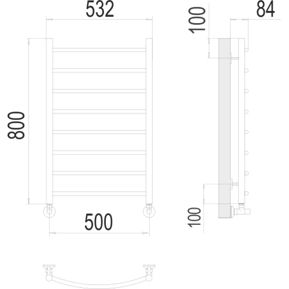 Полотенцесушитель водяной TERMINUS Классик 500х800/8 1/2" нижнее подключение