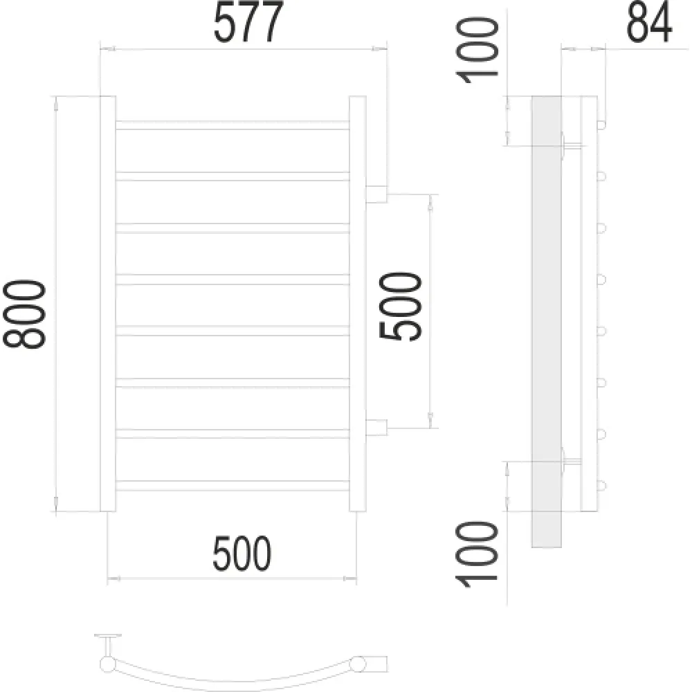 Тип: водяной , Форма: лесенка , Материал: нержавеющая сталь , Подключение: боковое , Посадочное (межосевое) расстояние: 500 мм, Посадочный диаметр: 1 ", Высота: 80 см, Ширина: 57.7 см, Цвет: черный , Количество ребер: 8 шт.
