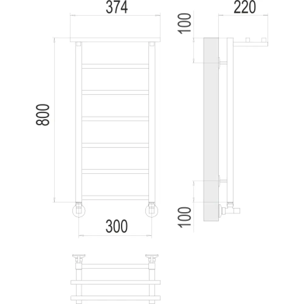 Полотенцесушитель водяной TERMINUS Контур 300x800/7 1/2" с полкой, нижнее подключение