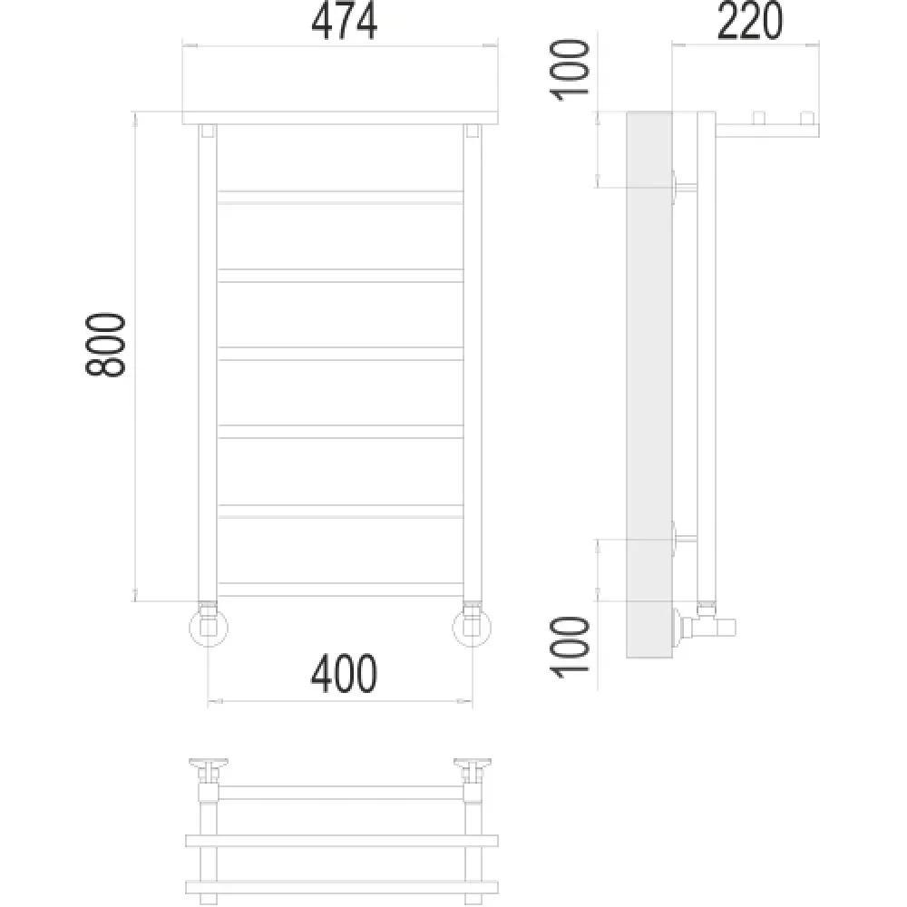 Тип: водяной , Форма: лесенка , Материал: нержавеющая сталь , Подключение: нижнее , Посадочное (межосевое) расстояние: 400 мм, Посадочный диаметр: 1/2 ", Высота: 80 см, Ширина: 47.4 см, Цвет: хром , Количество ребер: 6 шт.