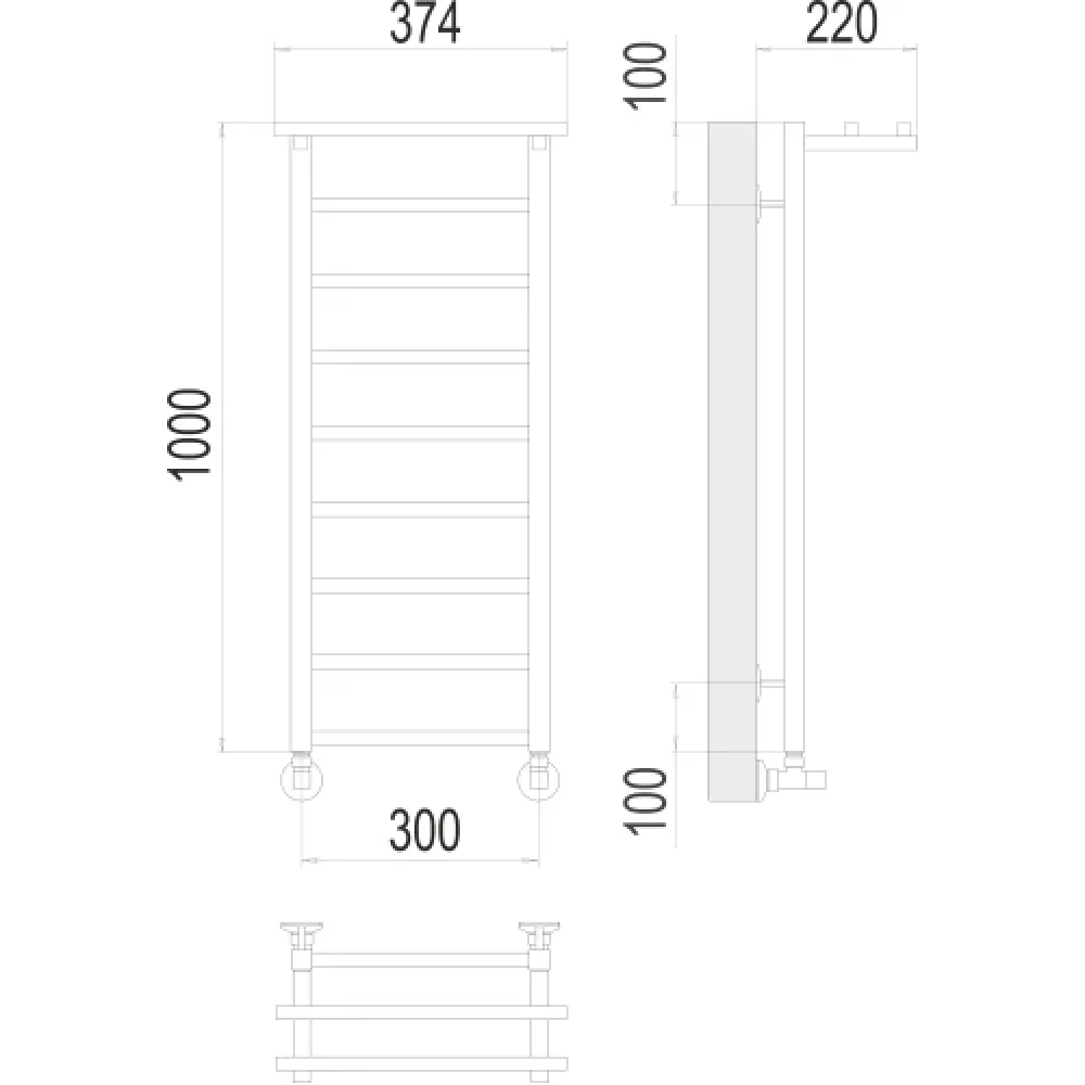 Полотенцесушитель водяной TERMINUS Контур 300x1000/9 1/2" с полкой, нижнее подключение