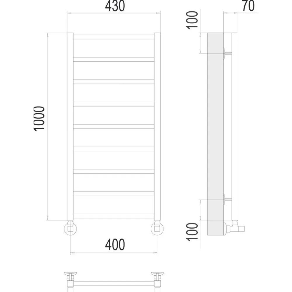 водяной, "лесенка", нержавеющая сталь, подключение нижнее (400 мм, 1/2"), 100x43 см, цвет: хром