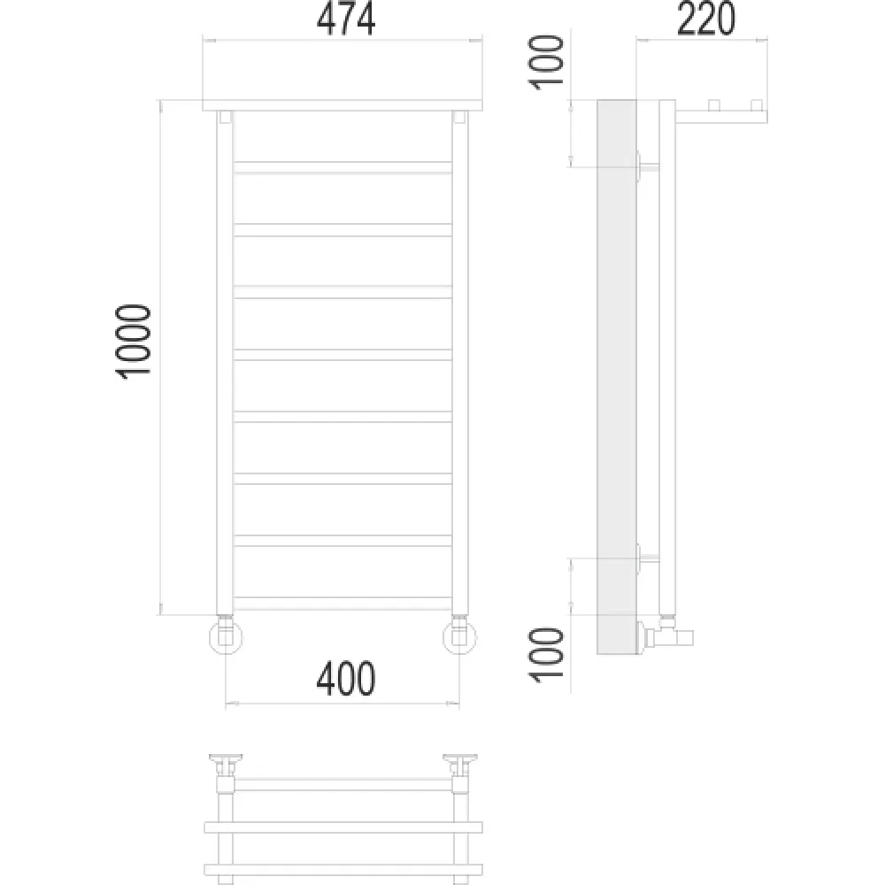 Полотенцесушитель водяной TERMINUS Контур 400x1000/9 1/2" с полкой, нижнее подключение