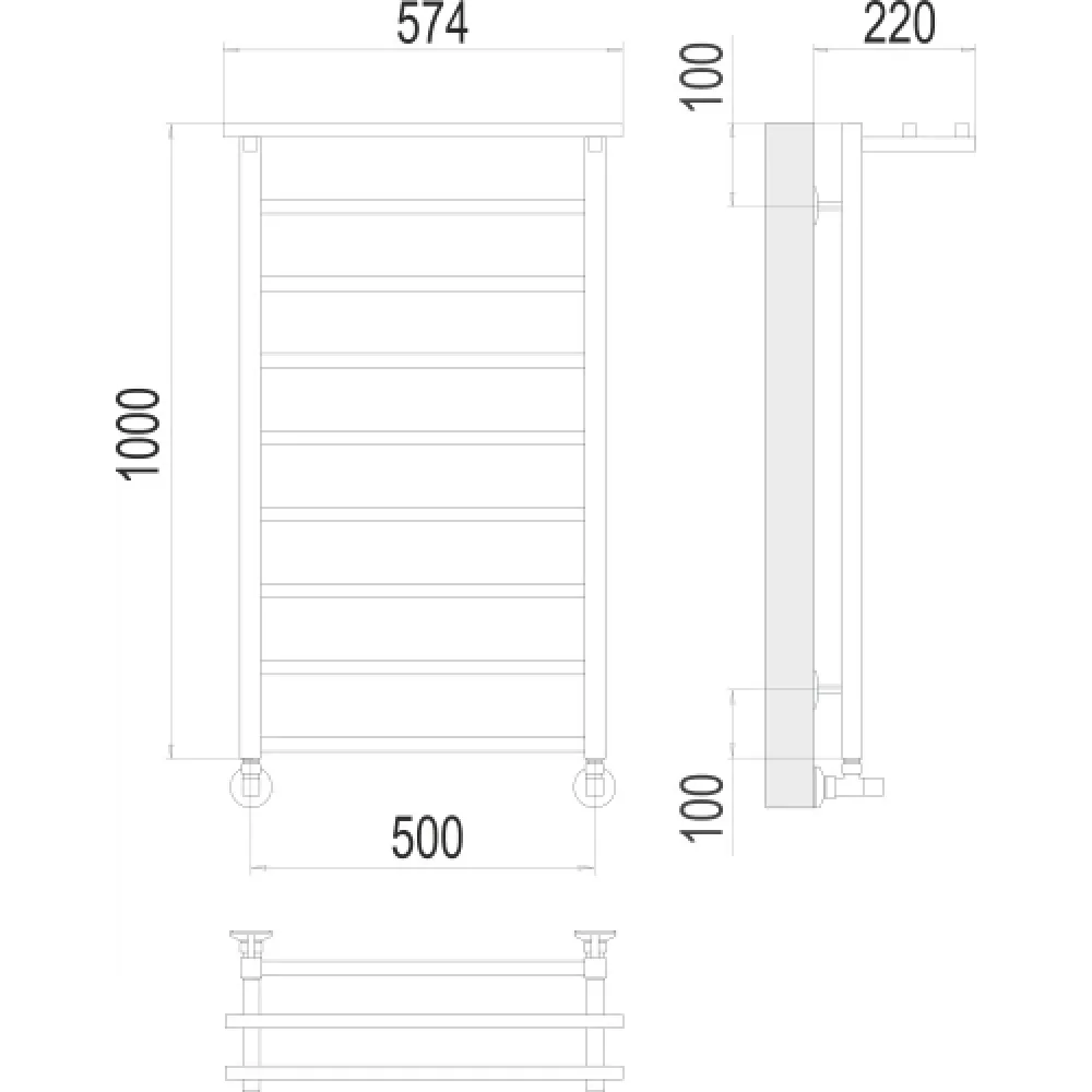 Тип: водяной , Форма: лесенка , Материал: нержавеющая сталь , Подключение: нижнее , Посадочное (межосевое) расстояние: 500 мм, Посадочный диаметр: 1/2 ", Высота: 100 см, Ширина: 57.4 см, Цвет: хром , Количество ребер: 9 шт.