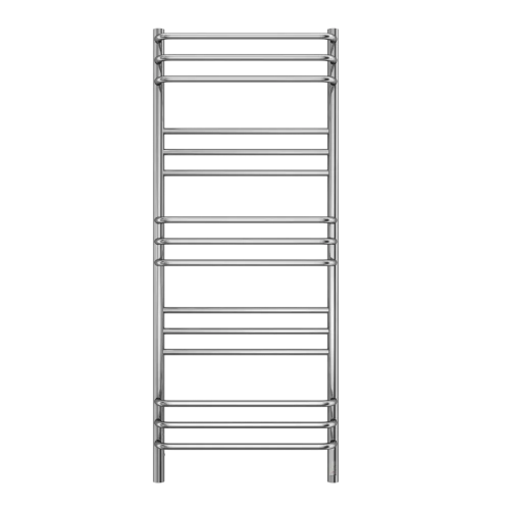 Тип: электрический , Форма: лесенка , Материал: нержавеющая сталь , Посадочное (межосевое) расстояние: 500 мм, Высота: 130 см, Ширина: 50 см, Цвет: хром , Количество ребер: 15 шт.