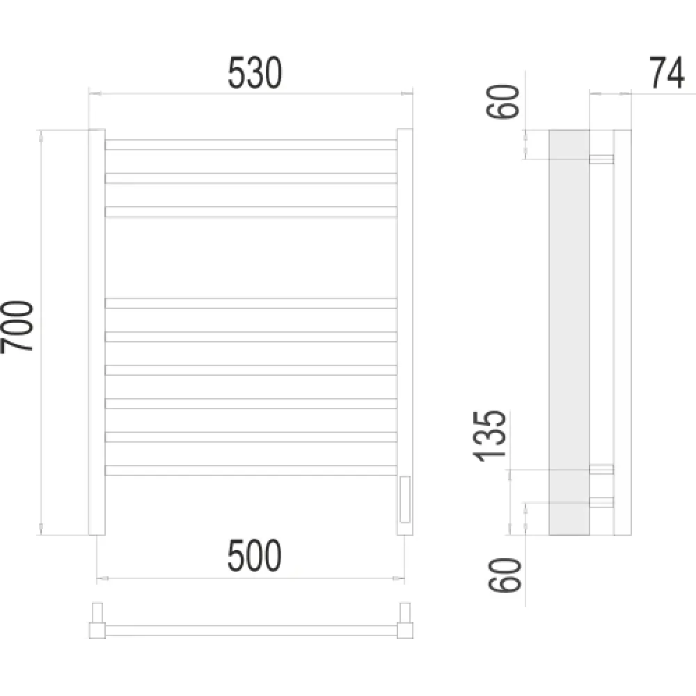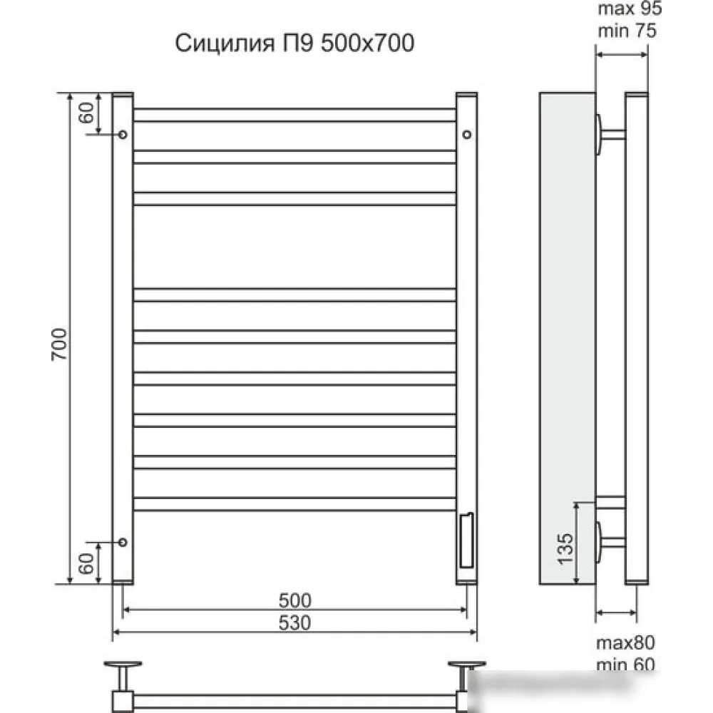 Полотенцесушитель электрический TERMINUS Сицилия 500x700/9 с sensor quick touch