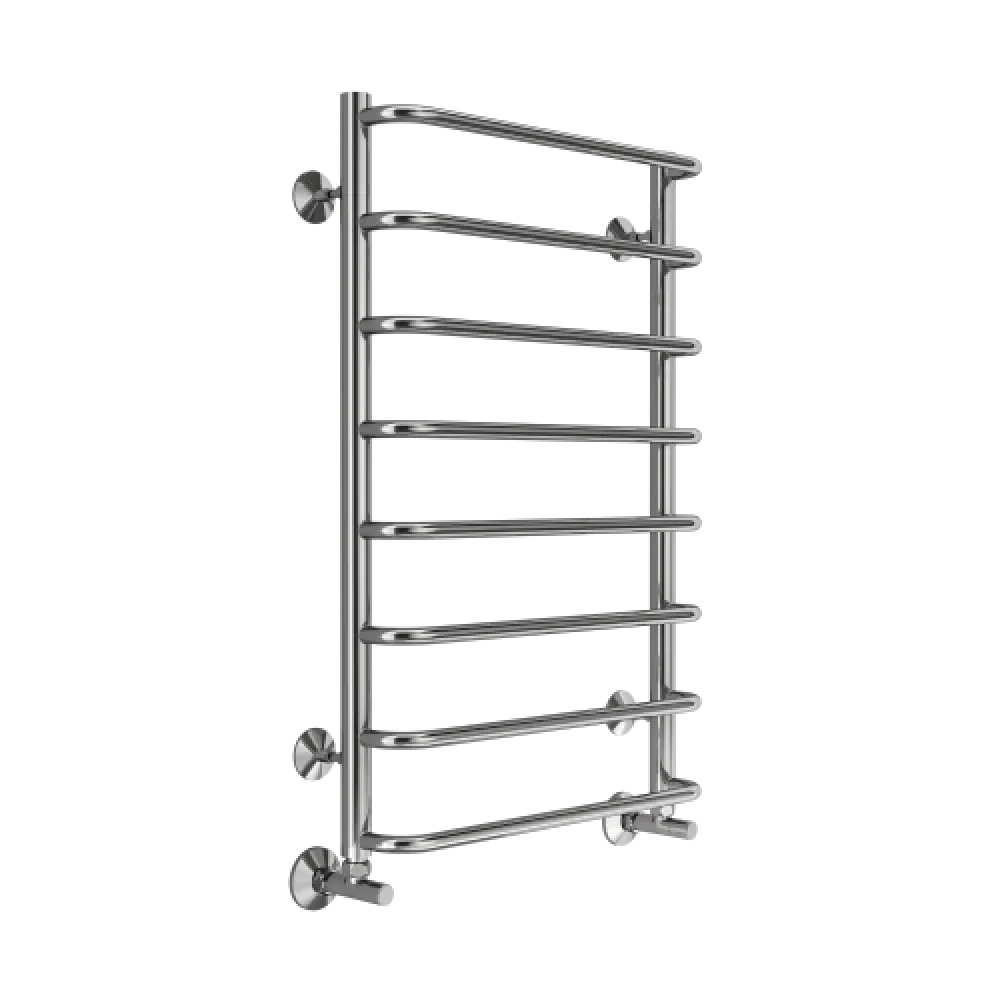 Тип: водяной , Форма: лесенка , Материал: нержавеющая сталь , Подключение: нижнее , Посадочное (межосевое) расстояние: 500 мм, Посадочный диаметр: 1/2 ", Высота: 80 см, Ширина: 50 см, Цвет: хром , Количество ребер: 8 шт.