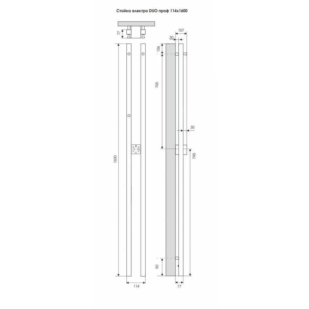 Полотенцесушитель электрический TERMINUS Стойка Duo Проф 1600 черный