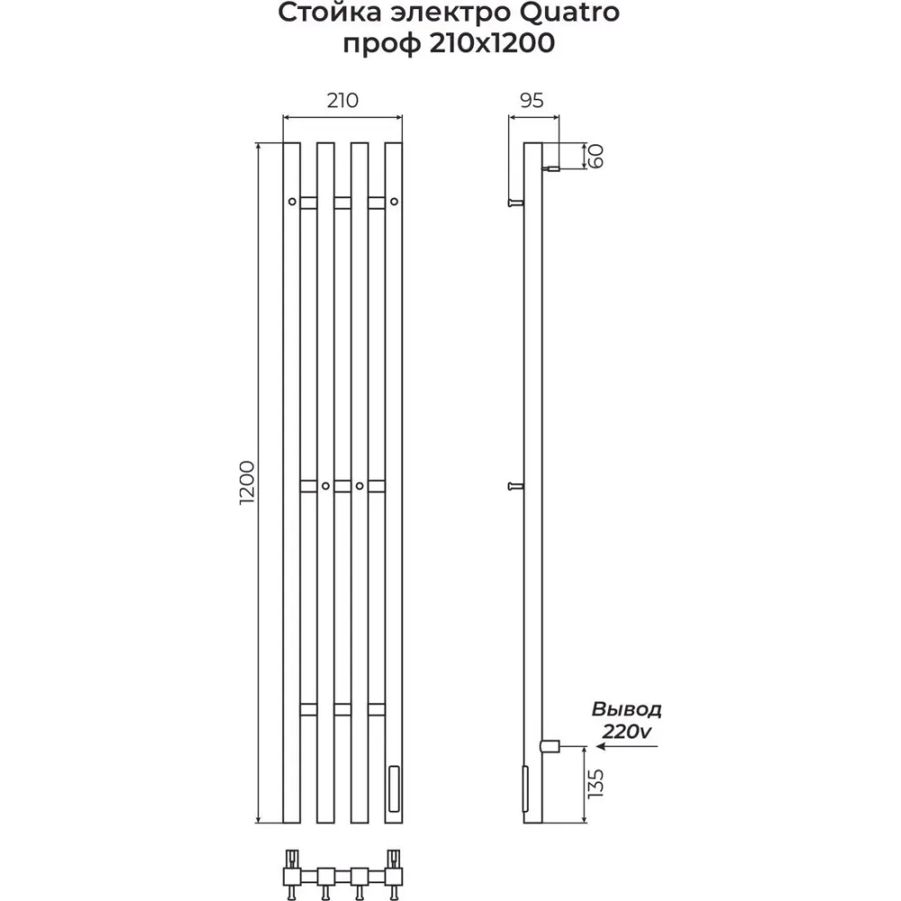 Полотенцесушитель электрический TERMINUS Стойка Quatro Круг 1200 черный