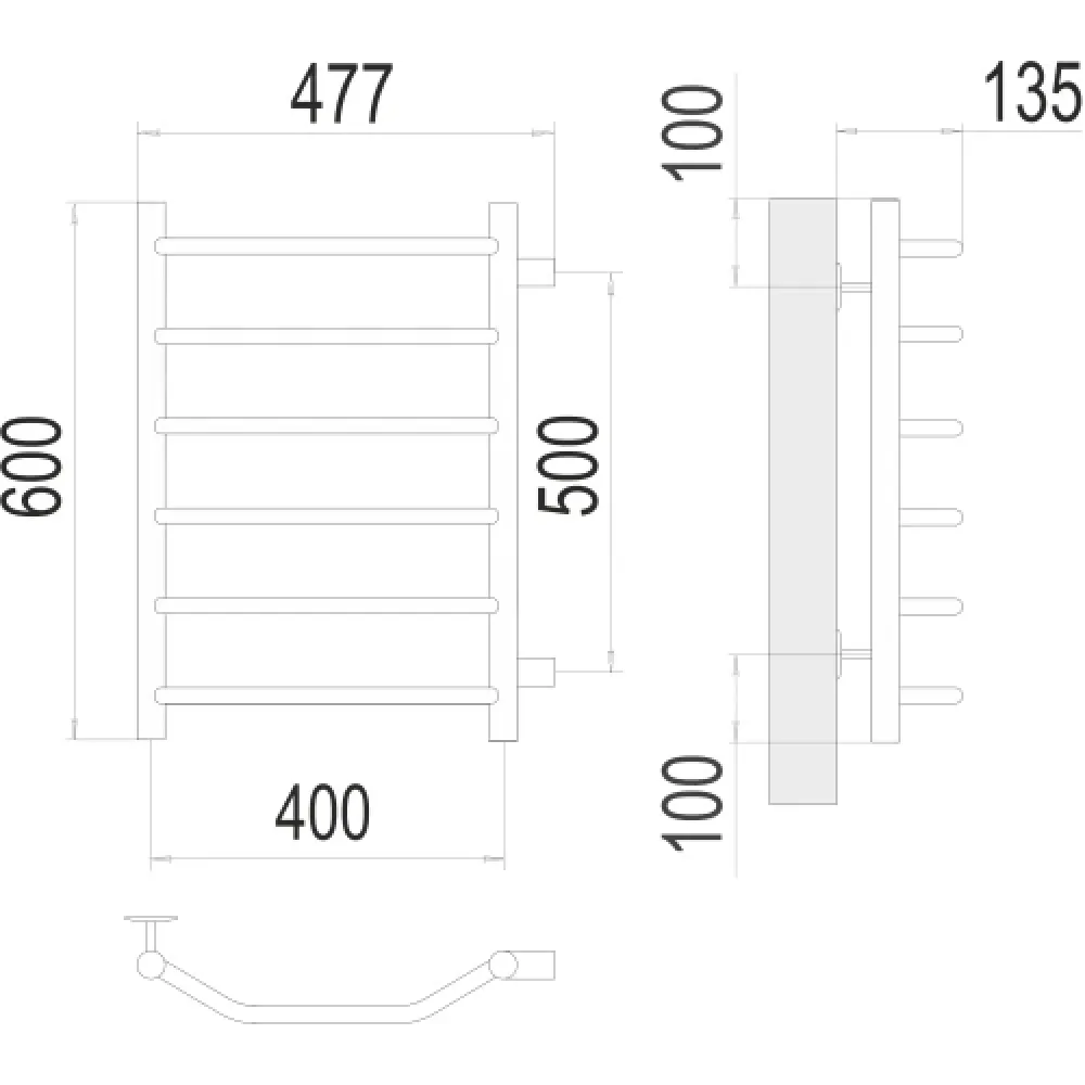 Тип: водяной , Форма: лесенка , Материал: нержавеющая сталь , Подключение: боковое , Посадочное (межосевое) расстояние: 500 мм, Посадочный диаметр: 1 ", Высота: 60 см, Ширина: 47.7 см, Цвет: хром , Количество ребер: 6 шт.