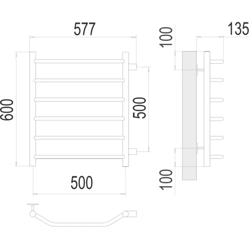 Тип: водяной , Форма: лесенка , Материал: нержавеющая сталь , Подключение: боковое , Посадочное (межосевое) расстояние: 500 мм, Посадочный диаметр: 1 ", Высота: 60 см, Ширина: 50 см, Цвет: хром , Количество ребер: 6 шт.