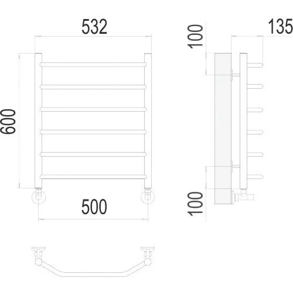 водяной, "лесенка", нержавеющая сталь, подключение нижнее (500 мм, 1/2"), 60x53.2 см, цвет: хром