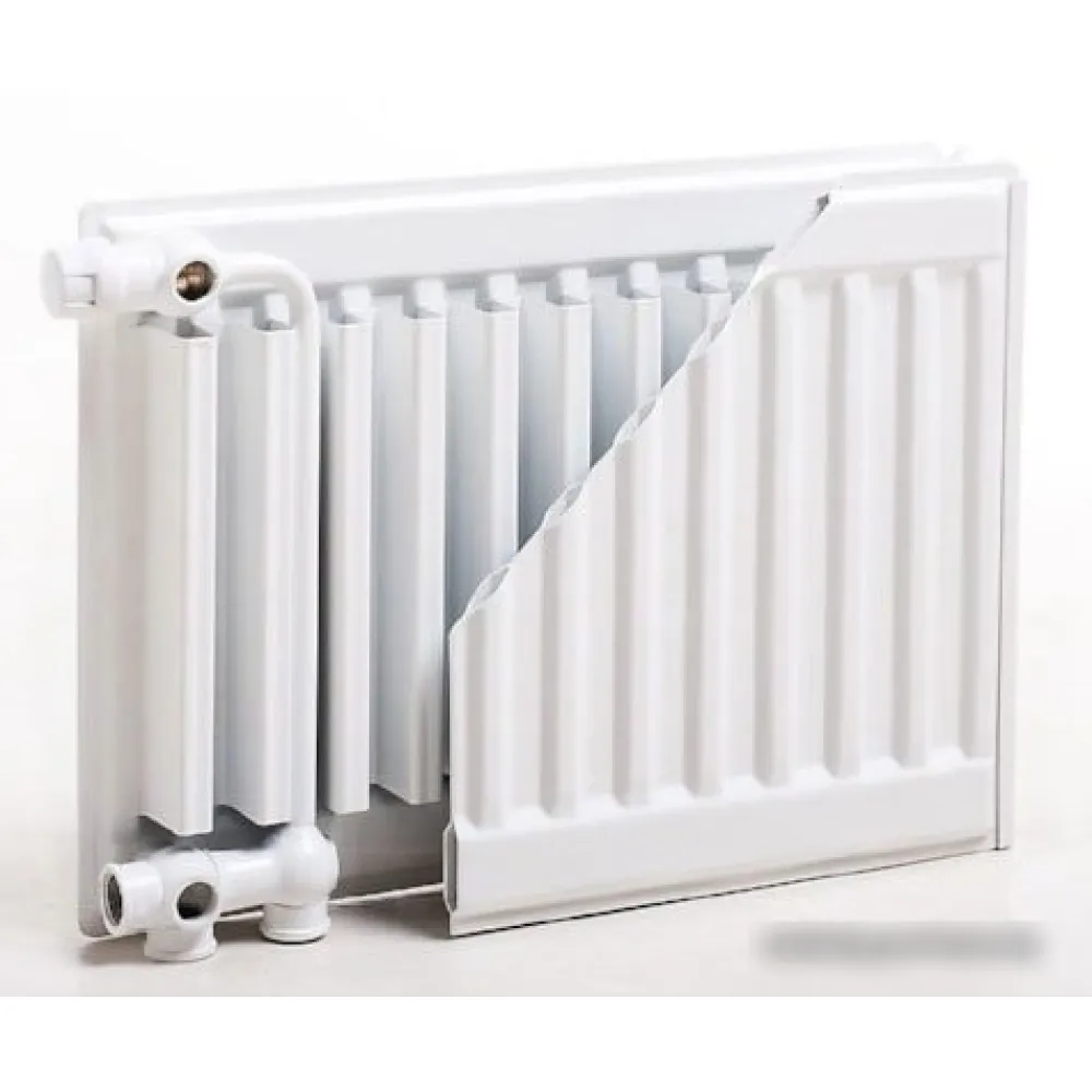 | Информация | С двумя рядами панелей по глубине. С двумя рядами оребрения, приваренными к каждой панели с внутренней стороны, с воздуховыпускной решеткой и боковыми стенками |