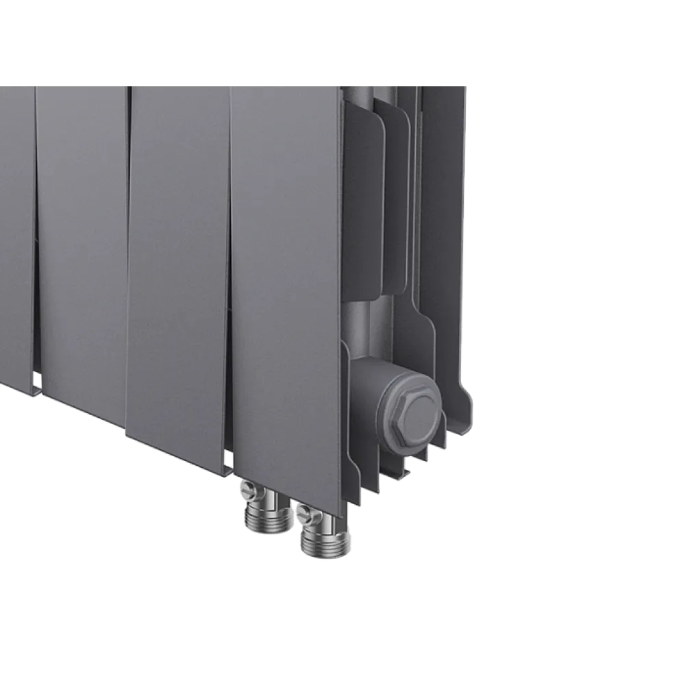 Нижнее подключение: в комплекте вентильная вставка M30x1,5, направляющая потока, кран Маевского в цвет радиатора, гайки с заглушкой в цвет радиатора.