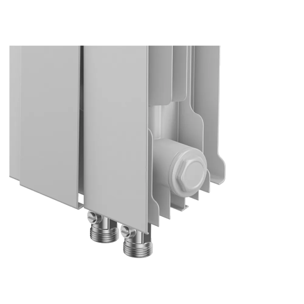 Нижнее подключение: в комплекте вентильная вставка M30x1,5, направляющая потока, кран Маевского в цвет радиатора, гайки с заглушкой в цвет радиатора.