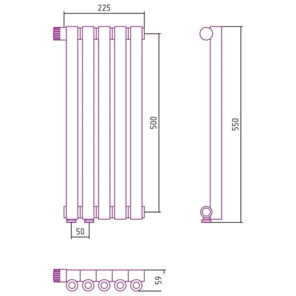 стальной трубчатый, боковое подключение, высота: 550 мм, межосевое расстояние: 50 мм