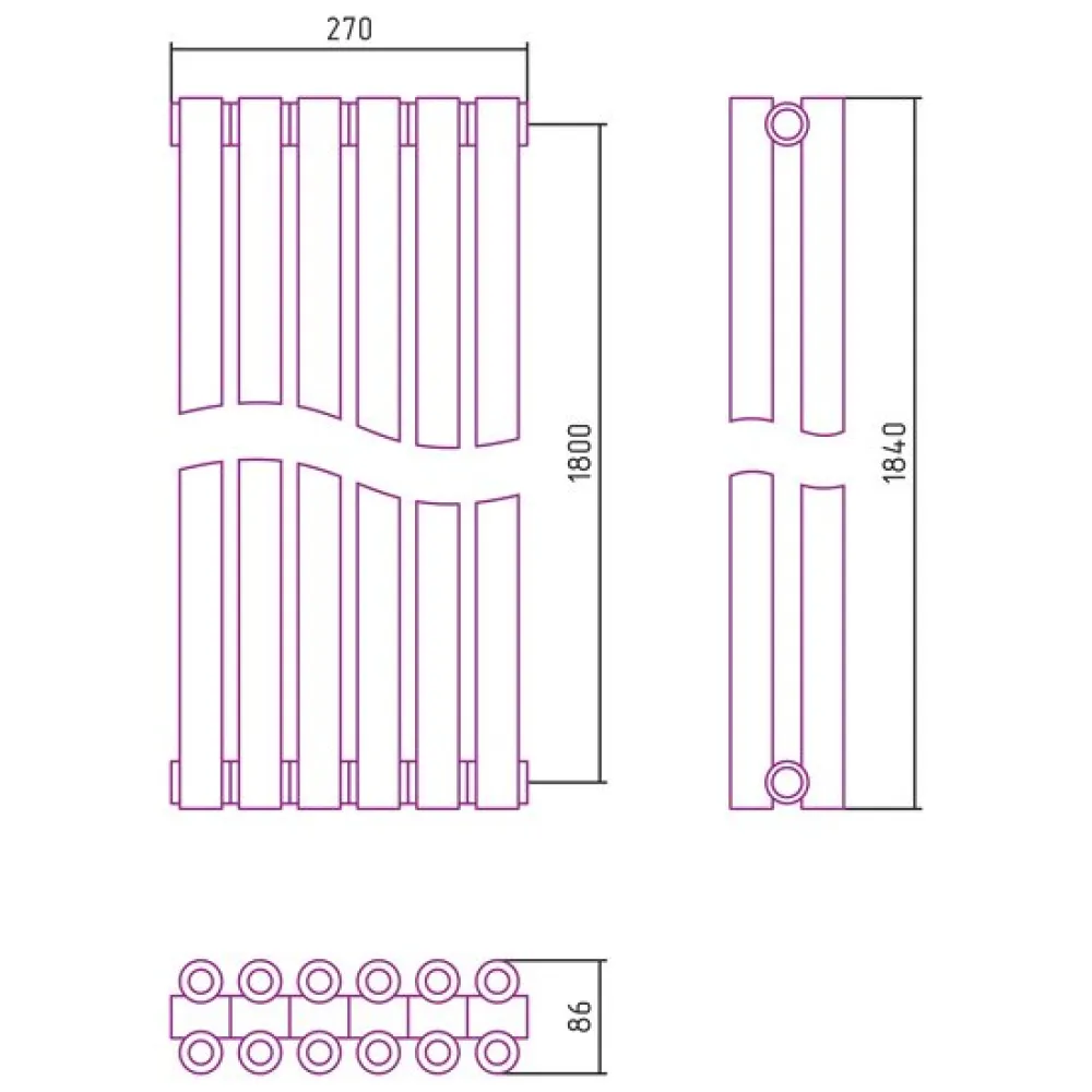 стальной трубчатый, боковое/нижнее подключение, высота: 1840 мм, межосевое расстояние: 1800 мм