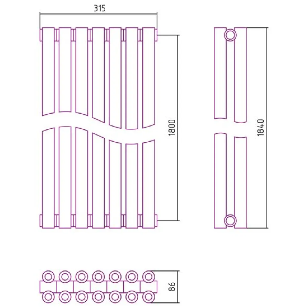 стальной трубчатый, боковое/нижнее подключение, высота: 1840 мм, межосевое расстояние: 1800 мм